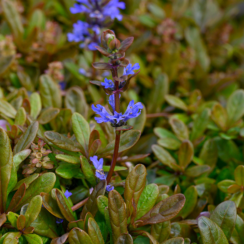 This very beautiful ground cover Ajuga 'Chocolate Chip' is something special, the leaves change colour from green to chocolate brown. This low flowering blue beauty will reach a maximum height of 20 cm. Blue flowers appear on this perennial in May and June. This ajuga likes to be in a place in partial shade. This creeping plant is excellent as a ground cover. The soil should not be too dry. You can propagate this amazing 'Chocolate Chips' by dividing it. Let this beautiful plant shine in your garden. Enjoy these summer flowers.