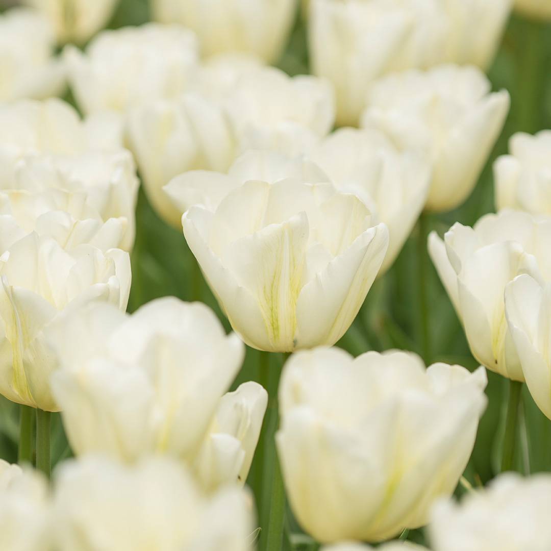 Are you looking for a tulip that radiates serenity while still capturing everyone's attention? The Tulip Green Spirit combines the purity of white blossoms with the vital green of spring. Thanks to its subtle color gradients, this tulip seems to blend seamlessly with the surrounding nature, while its elegant shape makes a powerful statement in any border or flower pot.